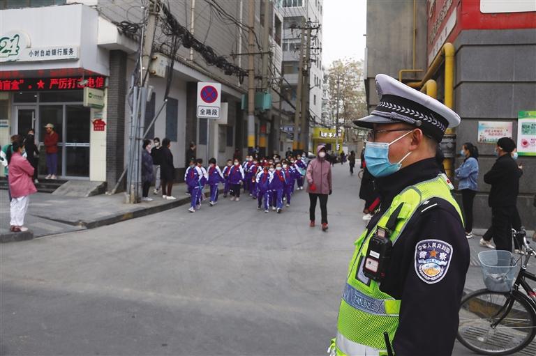 中國(guó)甘肅網(wǎng)4月12日訊 據(jù)蘭州日?qǐng)?bào)報(bào)道(記者 葛 強(qiáng) 文/圖)隨著全市中小學(xué)返校復(fù)課,為給廣大師生營(yíng)造良好的道路交通環(huán)境,4月11日,蘭州市公安局各交警大隊(duì)結(jié)合轄區(qū)復(fù)課首日道路交通實(shí)際情況,全面啟動(dòng)護(hù)學(xué)崗,安排警力在學(xué)生上、下學(xué)期間加大校園及周邊道路交通疏導(dǎo)力度,切實(shí)筑牢校園周邊交通安全防線。