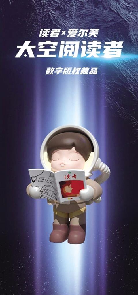 據(jù)介紹,“讀者×愛(ài)爾芙.太空閱讀者”是莫嘰文化聯(lián)手讀者出版?zhèn)髅焦煞萦邢薰就瞥龅臄?shù)字版權(quán)藏品。愛(ài)爾芙是莫嘰旗下火爆主題IP ,是一位水澤精靈,擁有治愈、溫暖、親和、陪伴的特質(zhì)。本次藏品以3D形態(tài)呈現(xiàn)愛(ài)爾芙在太空中手捧《讀者》閱讀的樣子,借此致敬不斷探索、不斷求知的中國(guó)航天人。