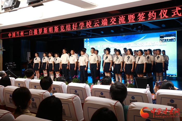 在蘭州外國語高級中學舉行的此次“中國蘭州—白俄羅斯明斯克結(jié)好學校云端交流暨簽約儀式”上,蘭州外國語高級中學與明斯克市第23中學、蘭州市第33中學與明斯克市第33中學校長及主要負責人經(jīng)過交流后,分別簽署締結(jié)“百校結(jié)好”項目學校協(xié)議,正式建立友好合作關(guān)系。今后將在師生互訪、教師培訓、課程交流、國際學生社團建設等方面開展合作交流。之后,四所學校學生還分別表演了富有各國傳統(tǒng)文化和民族特色的文藝節(jié)目。