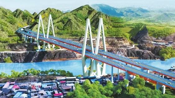 大橋主跨328米,雙向八車道,為半漂浮體系組合梁斜拉橋。橋塔采用分離式雙鉆石四索面“雙子星”新型結構,北塔高133米,南塔高152米,是國內(nèi)Ⅷ度以上地震烈度區(qū)最大跨度分幅聯(lián)塔斜拉橋。