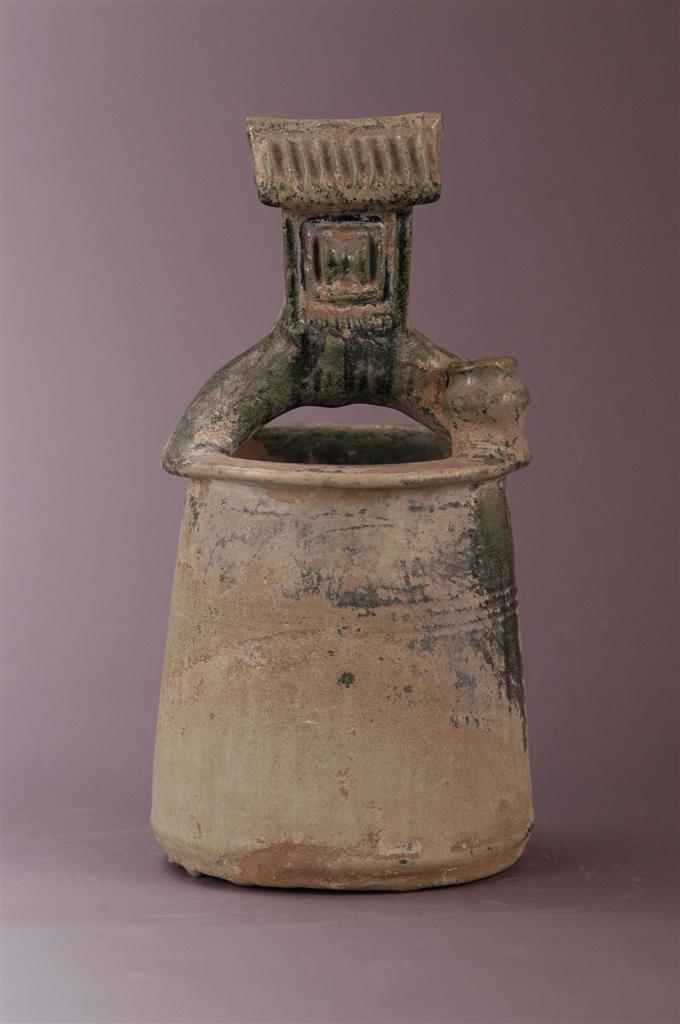 其中,綠釉陶井高26.2厘米,口9.4厘米,底12.5厘米,為蘭州市博物館館藏三級文物。兩漢時(shí)期陶井作為漢代模型明器的重要組成部分,普遍見于兩漢時(shí)期的墓葬中。漢代推崇儒家思想,以“孝”治國,提倡厚葬,“事死如事生”的喪葬觀念,導(dǎo)致在兩漢墓葬中多隨葬陶井模型明器,是模仿現(xiàn)實(shí)中的水井設(shè)施,將之做成模型埋入墓中供逝者享用。漢代,水井設(shè)施被廣泛地使用,考古發(fā)現(xiàn)的漢代居住、農(nóng)業(yè)及手工業(yè)遺址中出土有大量的水井遺跡。