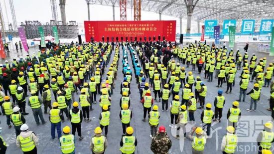 2月18日,蘭州中川國際機(jī)場三期擴(kuò)建工程航站樓工程主體結(jié)構(gòu)合攏活動暨沖刺動員會在甘肅蘭州新區(qū)舉行。圖為活動現(xiàn)場。 中新社記者 九美旦增 攝