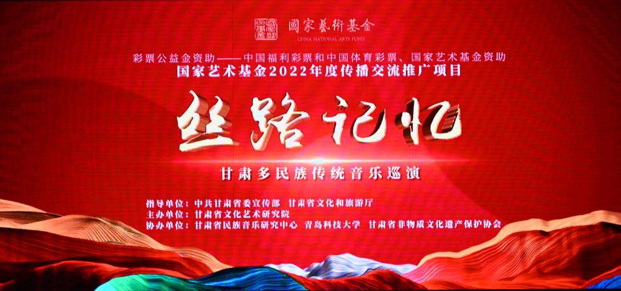 3月25日,“絲路記憶·甘肅多民族傳統(tǒng)音樂(lè)巡演”在甘肅省蘭州市金城大劇院開(kāi)幕。作為2022年度國(guó)家藝術(shù)基金傳播交流推廣項(xiàng)目,“絲路記憶·甘肅多民族傳統(tǒng)音樂(lè)巡演”旨在通過(guò)音樂(lè)展示甘肅的人文風(fēng)貌與民族特色,體現(xiàn)甘肅民族音樂(lè)的藝術(shù)特征,推動(dòng)中華優(yōu)秀傳統(tǒng)文化在高校傳播。