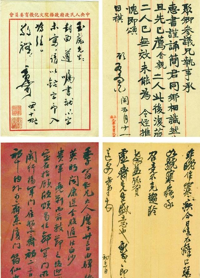本次展覽共展出中國近現(xiàn)代50多位名人的信札墨跡共計100多通。信札作者匯聚了清朝末期到民國初期政治、經(jīng)濟、軍事、宗教、文學藝術(shù)等領(lǐng)域著名人物,如吳昌碩、沈鈞儒、弘一法師、康有為、傅雷、郭沫若、吳湖帆、老舍、茅盾等,每一個作者都曾在中國近現(xiàn)代史上留下過濃墨重彩的一筆。