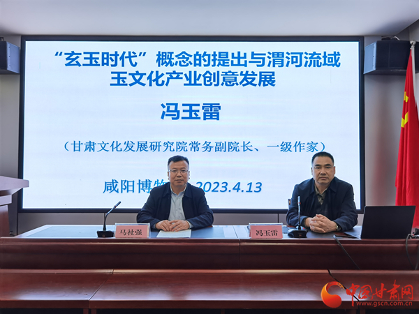 中國(guó)甘肅網(wǎng)4月13日訊 為進(jìn)一步促進(jìn)博物館學(xué)術(shù)研究交流創(chuàng)新,激發(fā)博物館發(fā)展活力,持續(xù)推動(dòng)博物館高質(zhì)量發(fā)展,陜西咸陽(yáng)博物院于4月13日下午3點(diǎn)舉辦第二期“咸博大講堂”專(zhuān)題講座,甘肅文化發(fā)展研究院常務(wù)副院長(zhǎng)、一級(jí)作家馮玉雷作了題為《“玄玉時(shí)代”概念的提出與渭河流域玉文化產(chǎn)業(yè)創(chuàng)意發(fā)展》的學(xué)術(shù)報(bào)告。咸陽(yáng)博物院院長(zhǎng)馬社強(qiáng)主持講座。