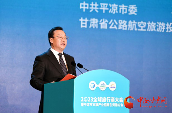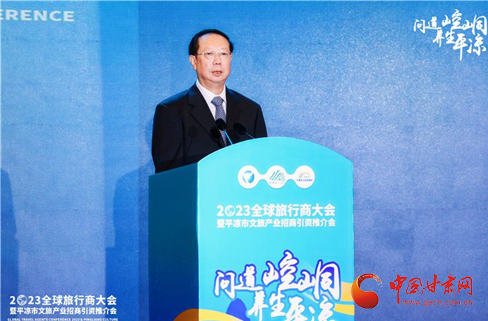 何效祖在致辭中說,平?jīng)鍪歉拭C向東開放的“門戶”城市,是風(fēng)景宜人的旅游城市,是甘肅布局的文旅康養(yǎng)基地和支撐“一核三帶”區(qū)域發(fā)展格局中的重要支點(diǎn),擁有崆峒山、大云寺·王母宮、瑤池溫泉等眾多聞名遐邇的人文和自然景觀。今天,我們與平?jīng)鍪形姓⒅袊?guó)旅行社協(xié)會(huì)、甘肅公航旅集團(tuán)一道搭建平臺(tái),誠邀各位嘉賓走進(jìn)甘肅、深入平?jīng)?,組織開展宣傳推介、洽談合作、展示展銷、考察踩線等系列活動(dòng),就是要引導(dǎo)大家深度感知甘肅高質(zhì)量發(fā)展的強(qiáng)烈愿望,實(shí)地觸摸甘肅文旅如火如荼的生動(dòng)實(shí)踐,誠懇表達(dá)隴原兒女“視企業(yè)家為最寶貴財(cái)富”的真誠合作和赤誠服務(wù)之心。我們衷心希望,廣大中外旅行商和文旅專家、文旅企業(yè)家以本次大會(huì)為契機(jī),加強(qiáng)交流互鑒,深化務(wù)實(shí)合作,加大在甘投資力度,組織更多游客到甘肅觀光旅游,帶動(dòng)更多優(yōu)質(zhì)文旅企業(yè)和項(xiàng)目落戶甘肅,合力譜寫甘肅文旅高質(zhì)量發(fā)展的嶄新篇章!