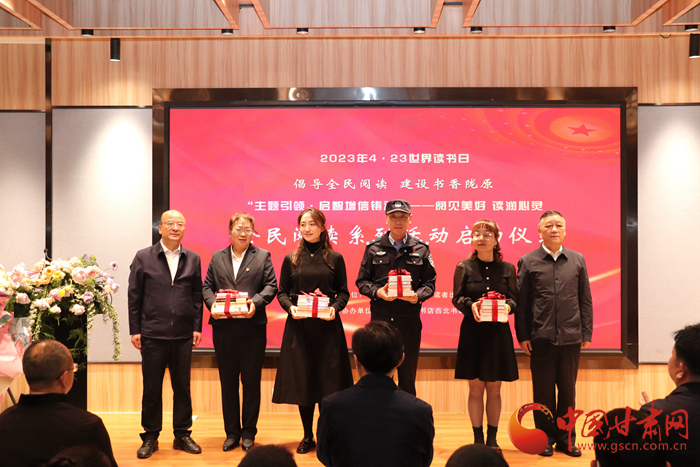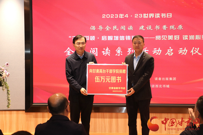 啟動儀式上,讀者出版集團黨委書記、董事長梁朝陽向高臺干部學院捐贈圖書并宣布系列活動正式啟動。讀者出版集團黨委委員、副總經(jīng)理王光輝與甘肅省新華書店黨委書記、董事長張曉東向讀者代表“甘肅好人”景正紅、“優(yōu)秀護士”嚴曉麗、“公安之星”王令成、“優(yōu)秀教師”王云芳捐贈圖書。