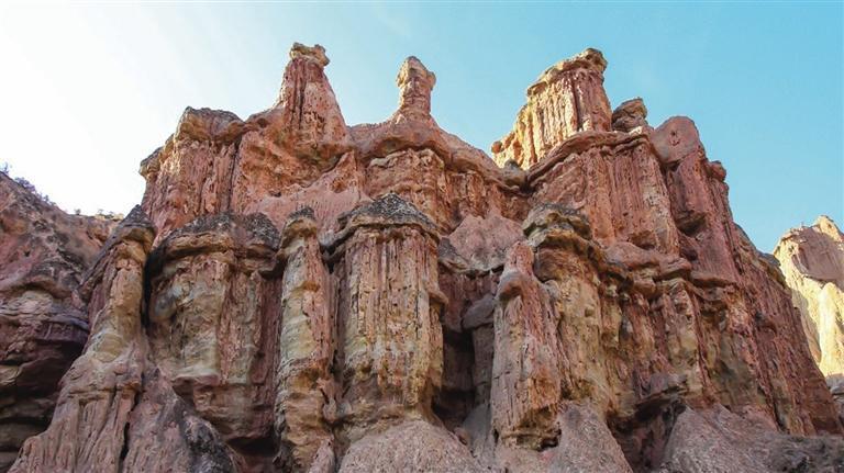 張掖土林地貌主要集中在該市肅南縣境內(nèi),平均海拔高度1700米左右,面積約20平方公里。土林發(fā)育齊全、類型多樣,從幼年時期的細(xì)溝土牙,到中青年期的圓盆土柱,直至成熟期的坡地殘柱,均有呈現(xiàn),完整地展示了土林地貌的形成與演化過程。