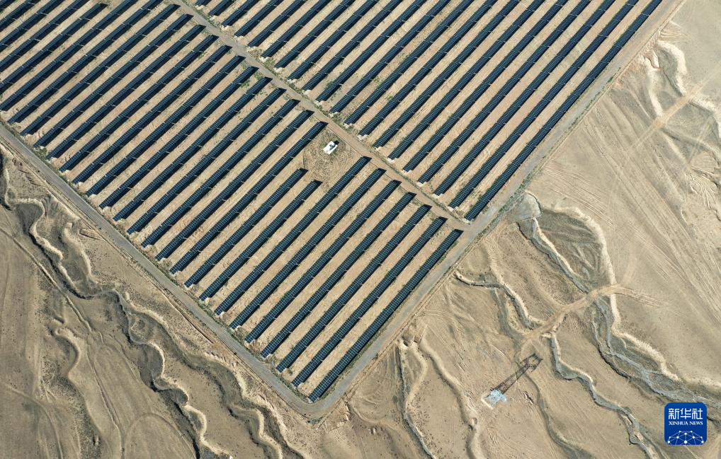 這是中國能建張掖甘州南灘30萬千瓦光伏發(fā)電項(xiàng)目(8月11日攝,無人機(jī)照片)。新華社記者 金良快 攝