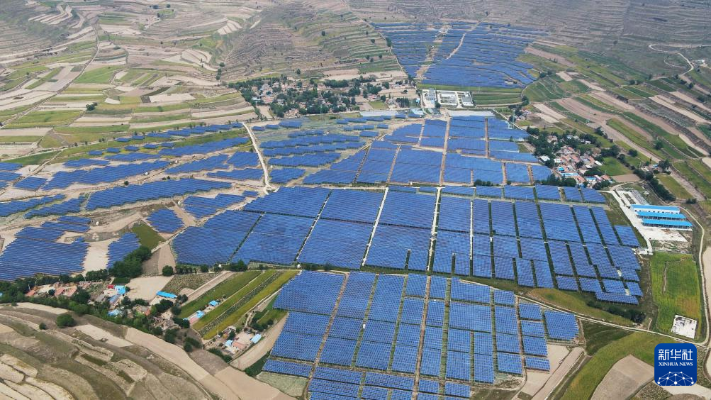 這是在通渭縣榜羅鎮(zhèn)四新村拍攝的光伏電站(9月9日攝,無人機(jī)照片)。新華社發(fā)(王克賢 攝)