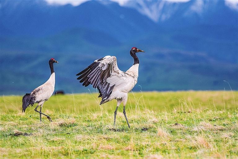 國家一級保護動物黑頸鶴在瑪曲濕地繁殖數(shù)量逐年增加。