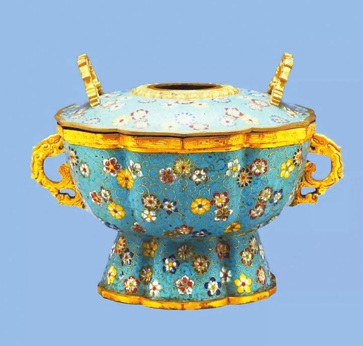 清代掐絲琺瑯團(tuán)花紋菱花式火鍋(故宮博物院藏)