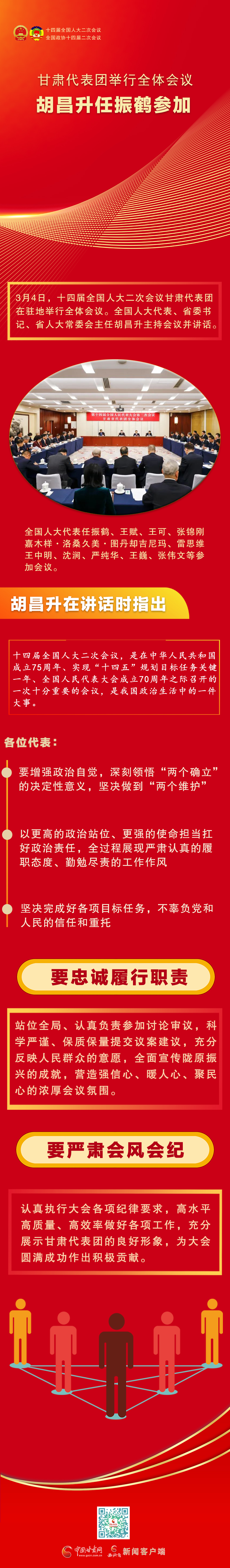 圖解|甘肅代表團(tuán)舉行全體會(huì)議 胡昌升任振鶴參加