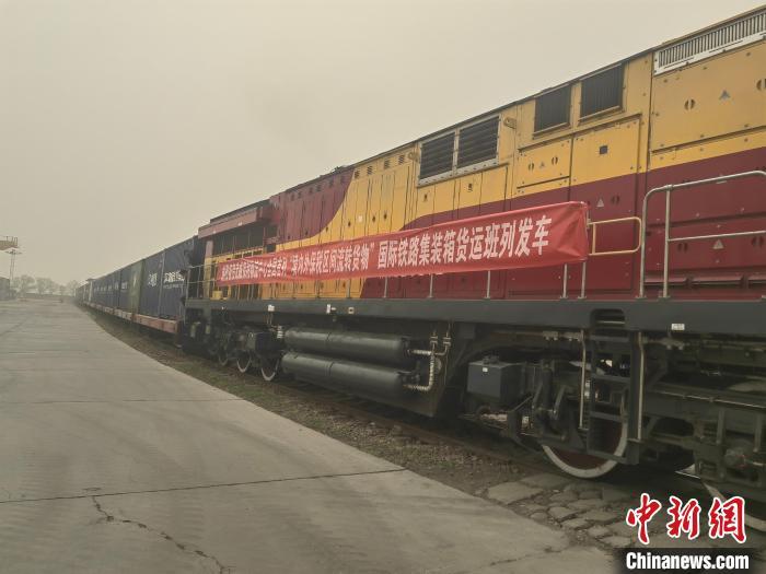 4月27日,75163次中歐班列“天馬號”(中亞線)緩緩駛離甘肅省武威南站。 曹科 攝