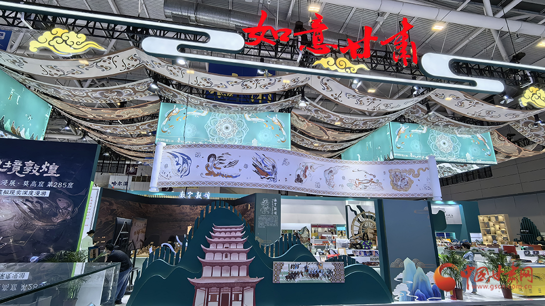 據(jù)了解,甘肅主題館位于深圳國(guó)際會(huì)展中心文化產(chǎn)業(yè)綜合展9號(hào)館,展陳面積510平方米,以主線貫穿、特色鮮明、視覺宏觀、內(nèi)容豐富為總體設(shè)計(jì)宗旨,采用敦煌壁畫中石綠為主色調(diào),頂部裝飾敦煌壁畫中藻井圖及線條,融入“九色鹿”“飛天”等設(shè)計(jì)元素,突出甘肅的歷史感和雄渾大氣。