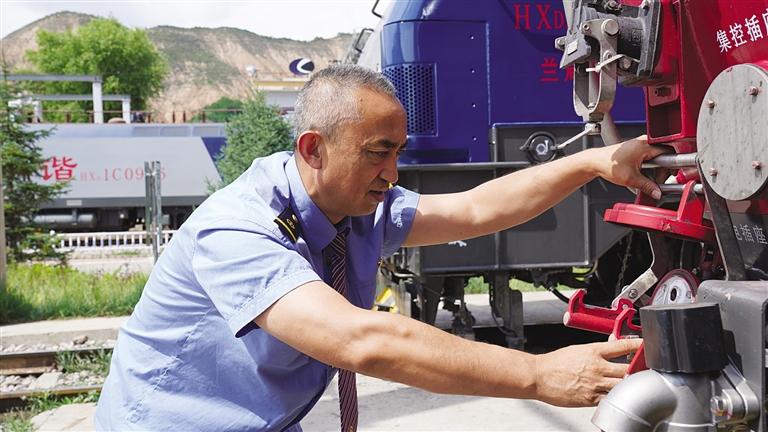 中國(guó)甘肅網(wǎng)7月9日訊 據(jù)蘭州晚報(bào)報(bào)道(記者 譚安麗 文/圖 通訊員 趙童)仲夏時(shí)節(jié),陽(yáng)光明媚,沐浴著大西北的陽(yáng)光,一列飛馳的鋼鐵巨龍?jiān)陔]海線(xiàn)群山中穿行。駕駛室內(nèi),56歲的司機(jī)劉曉明手握閘把、眼睛緊緊注視前方,操縱著機(jī)車(chē)穿山越谷,快速馳騁。