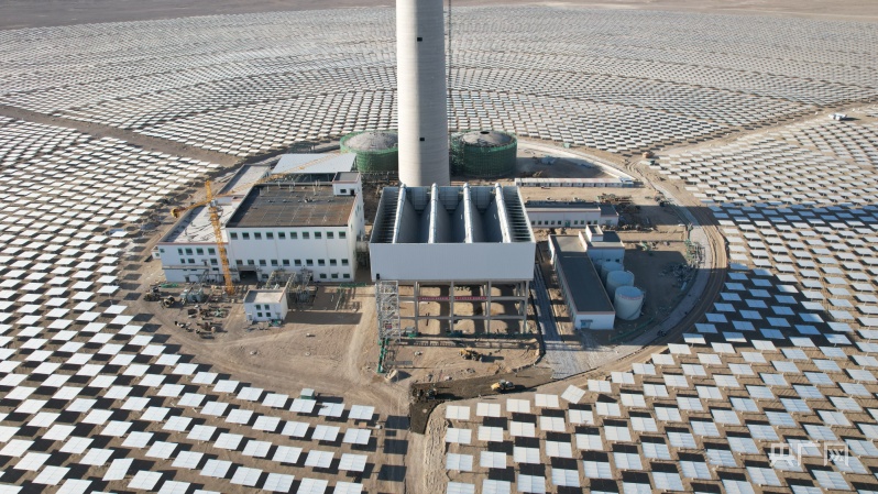 近日,走進(jìn)金塔中光太陽能“10萬千瓦光熱+60萬千瓦光伏”項(xiàng)目建設(shè)現(xiàn)場,只見綿延數(shù)十公里的太陽能電池板整齊排列,25594面單塊面積30平方米的高精度定日鏡環(huán)繞著247米高的吸熱塔,如同一朵巨大的銀色“向日葵”。