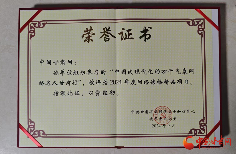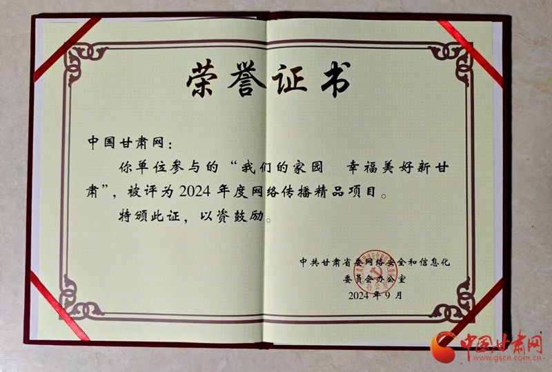 同時(shí),中國(guó)甘肅網(wǎng)參與的“我們的家園幸福美好新甘肅”和“中國(guó)式現(xiàn)代化的萬(wàn)千氣象網(wǎng)絡(luò)名人甘肅行”兩個(gè)項(xiàng)目被評(píng)為2024年度網(wǎng)絡(luò)傳播精品項(xiàng)目。