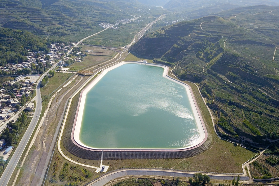 這是在天水市拍攝的已投用的天水城區(qū)引洮供水工程楊家灣調(diào)蓄水池(無(wú)人機(jī)照片)。新華社記者范培珅攝