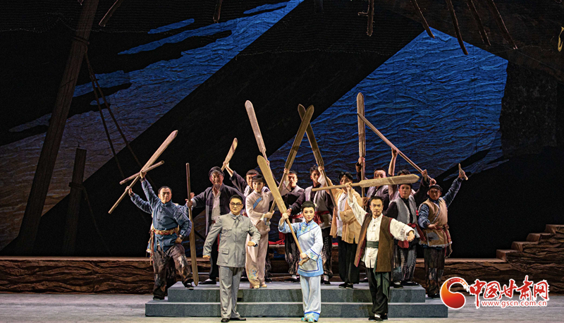 甘肅省隴劇院歷經(jīng)三年精心打造的隴劇《大河?xùn)|流》是國家藝術(shù)基金2024年度大型舞臺(tái)劇和作品創(chuàng)作資助項(xiàng)目。該劇以20世紀(jì)30年代末抗戰(zhàn)為背景,運(yùn)用具有地方特色的隴劇形式,生動(dòng)地描繪了大西北黃河邊的一群筏客子在國家危難之際,如何摒棄個(gè)人恩怨,團(tuán)結(jié)一致支援抗戰(zhàn),組成水上大型運(yùn)輸隊(duì),將大量物資安全送達(dá)抗戰(zhàn)前線的英勇壯舉。