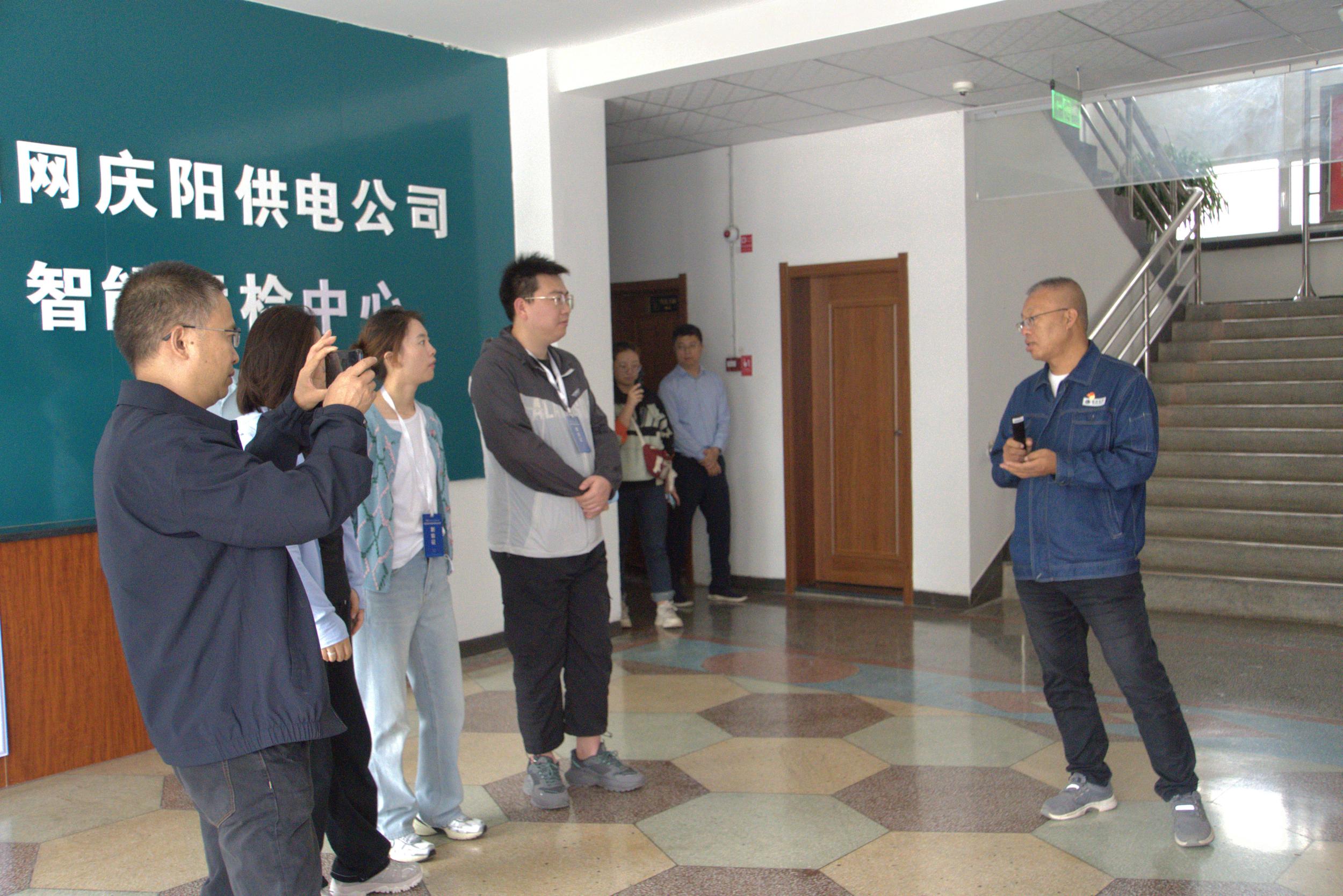 工作人員為采訪團介紹國網(wǎng)慶陽供電公司智能運檢中心概況