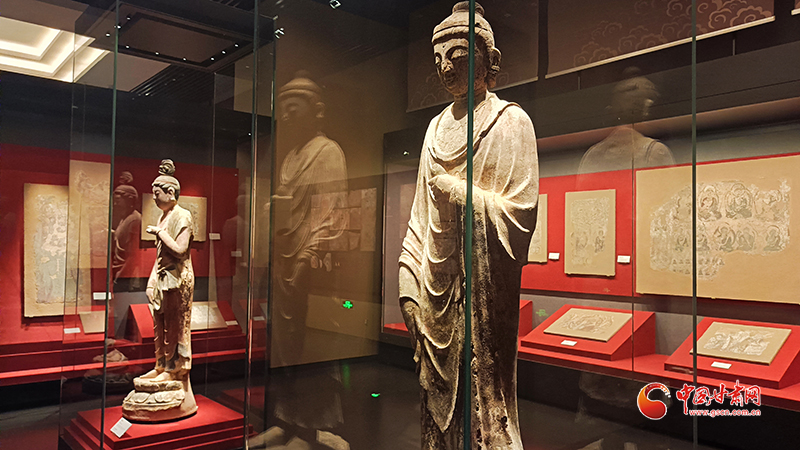 武威市博物館“天梯神韻涼州佛光”——天梯山石窟專題展被譽為“藏在博物館的石窟寺”,展品有天梯山石窟搬遷修復(fù)后的壁畫和彩塑等文物76件。