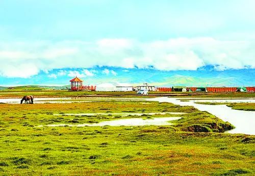 河曲馬場(chǎng)景區(qū)以熱爾欽濕地草原、熱爾欽湖為主要自然景觀,目前建有神駒廣場(chǎng)、高原馬術(shù)活動(dòng)基地、步行街、親水濕地觀光平臺(tái)、星空帳篷酒店、房車帳篷營地、熱氣球觀光基地、瑪緹高端酒店等配套附屬設(shè)施。大自然在這里集高原湖濱濕地、沼澤濕地、高寒草原于一體,構(gòu)成了復(fù)合型的別樣景觀。