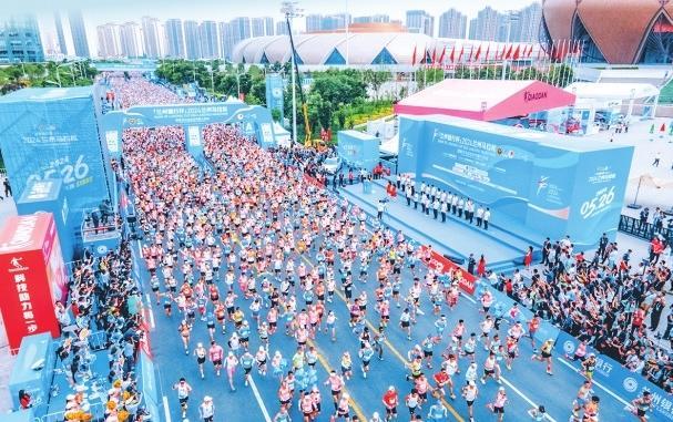 2024年5月26日7時(shí)30分,“蘭州銀行杯”2024蘭州馬拉松在蘭州奧體中心鳴槍開賽,來自美國(guó)、德國(guó)、澳大利亞、肯尼亞、韓國(guó)等22個(gè)國(guó)家和地區(qū)以及全國(guó)各地的4萬名選手相聚金城,用奔跑釋放生命活力。2024年是蘭州馬拉松新十年的開端之年,首次采用“全半程混合分區(qū)”的出發(fā)機(jī)制,并對(duì)賽道進(jìn)行優(yōu)化升級(jí),將絲路文化、黃河文化融入?yún)①惙酮?jiǎng)牌的設(shè)計(jì)中,還開展甘肅省博物館、甘肅簡(jiǎn)牘博物館、蘭州市博物館、讀者雜志社的文創(chuàng)展銷活動(dòng),邀請(qǐng)參賽選手免費(fèi)參觀9個(gè)景區(qū),為廣大選手提供更加優(yōu)質(zhì)、精彩的賽事體驗(yàn)。