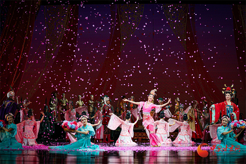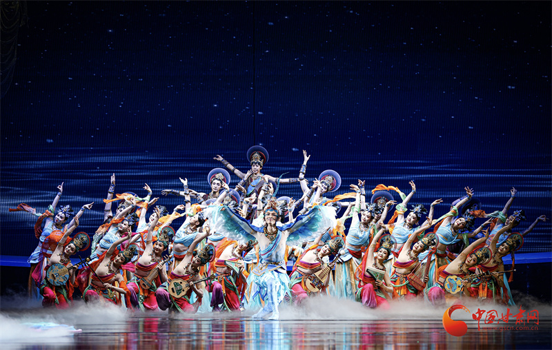 當全息投影將莫高窟壁畫在舞臺上緩緩展開,當駝鈴聲與電子樂編曲交織出跨越時空的和弦,觀眾相信,所謂“傳統(tǒng)”從不是凝固的標本,而是流動的生命,正如劇中穿越千年的花雨,落在古代畫工的筆端,落在當代舞者的袖間,浸潤海內(nèi)外每一位觀演者的心田。劇中描繪的中外友好通商、民心交融場景,更是對新時代“一帶一路”倡議的生動詮釋。(甘肅省文化旅游廳供圖)