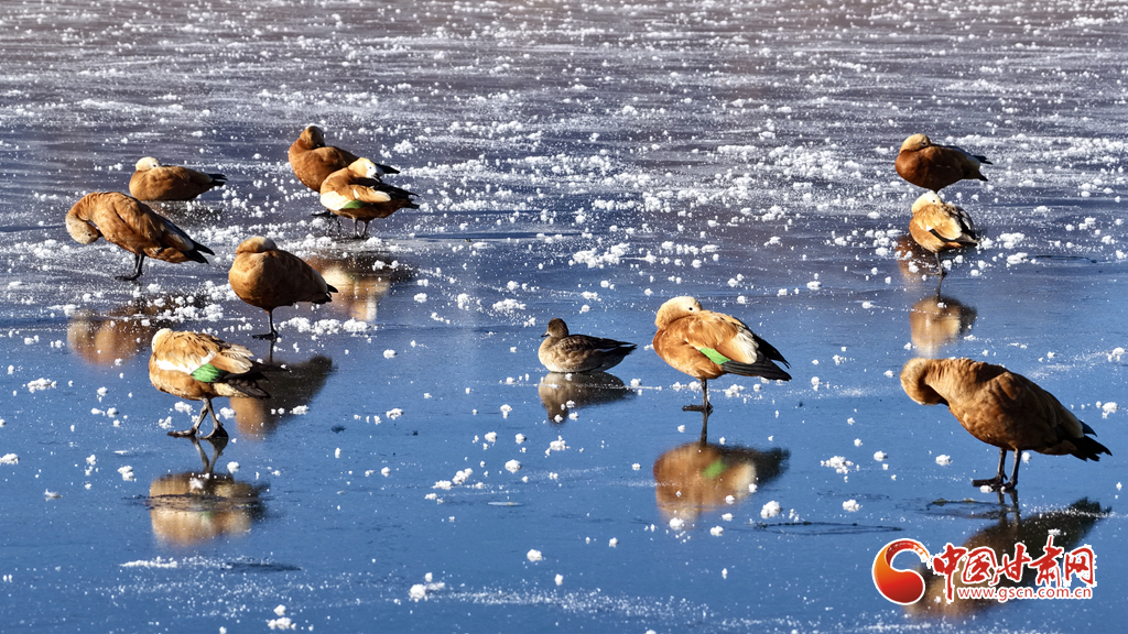 11月18日,初冬的甘肅山丹馬場(chǎng)鸞鳥(niǎo)湖濕地上,赤麻鴨、大天鵝、大白鷺三種珍稀鳥(niǎo)類悠然共處。它們或于冰面踱步,或在湖中游弋,或于淺灘佇立,共同構(gòu)成了濕地生態(tài)持續(xù)向好的生動(dòng)圖景。