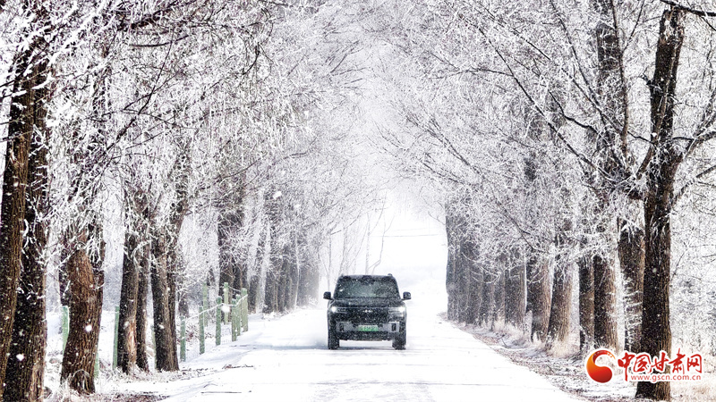 一夜之間,天地銀裝素裹。晶瑩霧凇或綴滿枝頭,或輕覆草木,將道路兩旁幻化成如夢冰雪世界。寒風(fēng)掠過,霧凇凝霜疊雪,兼具北國壯闊蒼茫與冬日溫柔靜謐。