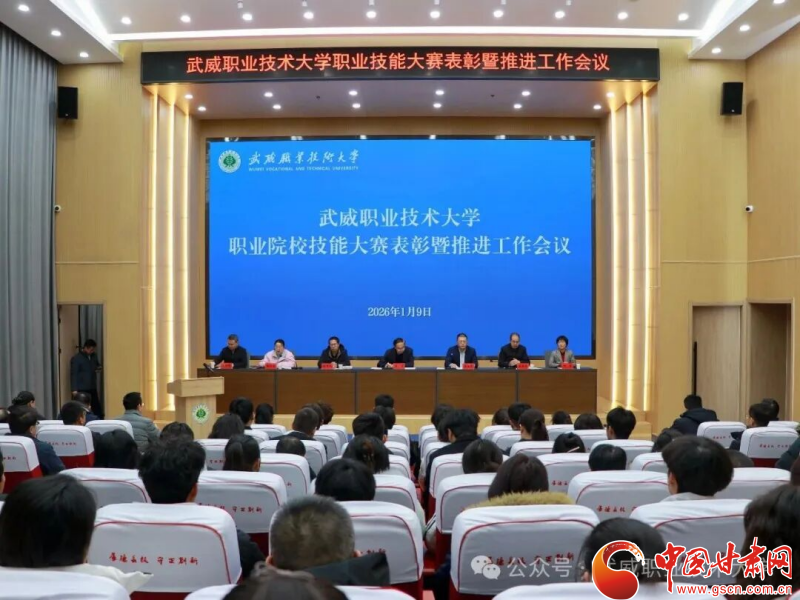 中國(guó)甘肅網(wǎng)1月11日訊(西北角·中國(guó)甘肅網(wǎng)記者 張振國(guó))1月9日,武威職業(yè)技術(shù)大學(xué)召開(kāi)職業(yè)院校技能大賽表彰暨推進(jìn)工作會(huì)議。黨委書(shū)記王宏出席會(huì)議并講話。在家校領(lǐng)導(dǎo)班子成員、各學(xué)院(部)及職能部門(mén)負(fù)責(zé)人、獲獎(jiǎng)師生代表以及備戰(zhàn)2026年大賽的師生代表共同參會(huì)。校長(zhǎng)李海軍主持會(huì)議。