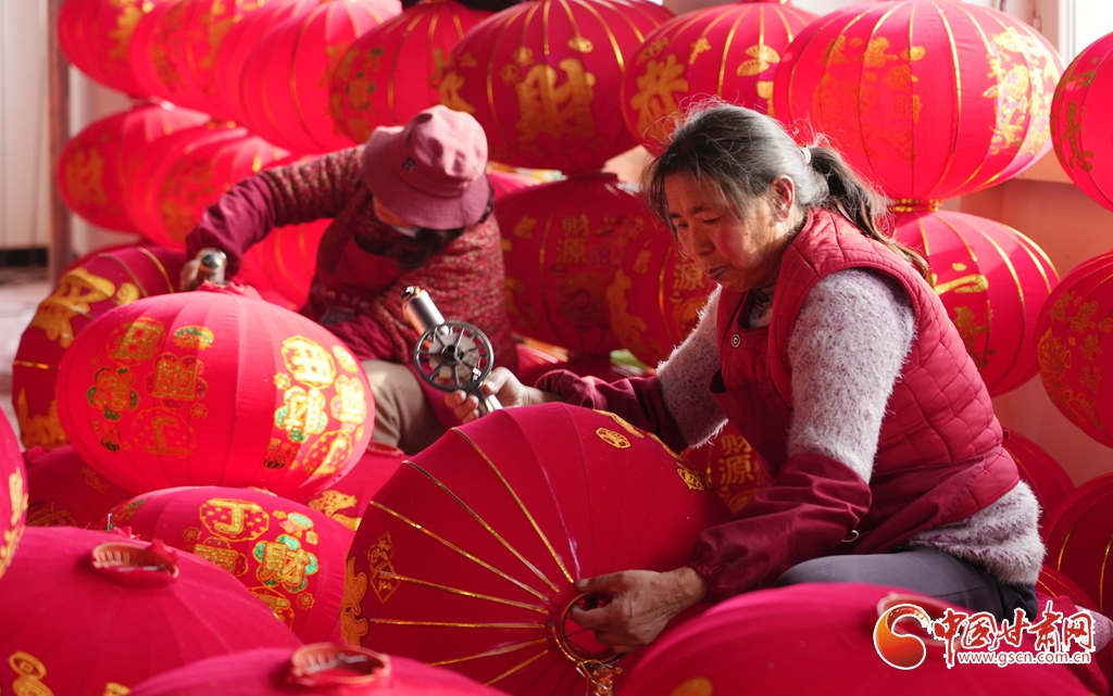 1月13日,莊浪縣宮燈產(chǎn)業(yè)園內(nèi),工人們正忙著制作各式燈籠。隨著春節(jié)臨近,燈籠訂單大幅增加,當(dāng)?shù)厣a(chǎn)企業(yè)正加班加點(diǎn),趕制供應(yīng)節(jié)日市場(chǎng)的大紅燈籠。目前主要生產(chǎn)紅植絨燈籠、仿羊皮燈籠、七彩走馬轉(zhuǎn)燈、鐵口緞面燈籠等二十多個(gè)品種,產(chǎn)品暢銷(xiāo)甘肅、陜西、四川、寧夏、青海等多個(gè)省區(qū)。