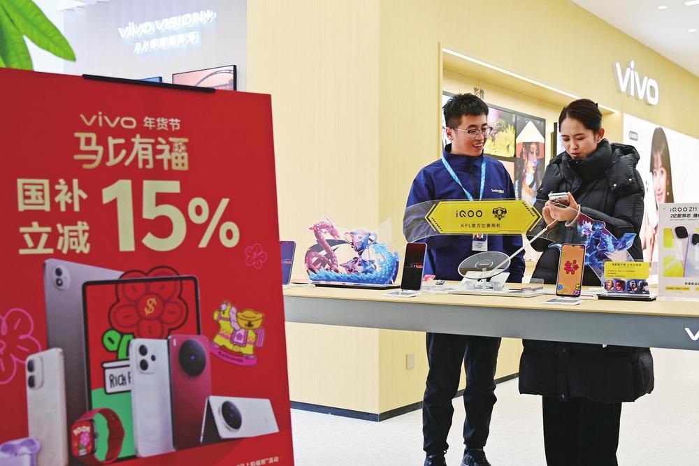 “新國(guó)補(bǔ)”政策全面實(shí)施,蘭州市民搶抓福利選購(gòu)手機(jī)。