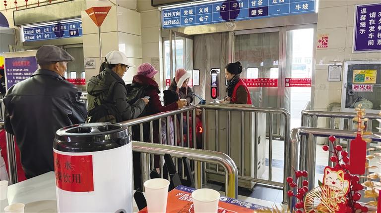 清晨六點(diǎn)的蘭州客運(yùn)中心,一抹抹“志愿紅”已在晨曦中閃動(dòng)。“大爺,行李我?guī)湍嗌宪?,您慢著點(diǎn)”“阿姨,母嬰室往這邊走,里面有專用休息區(qū)和消毒柜”……親切的引導(dǎo)、主動(dòng)的幫扶,讓匆忙的歸途多了幾分從容。務(wù)工返鄉(xiāng)的老李接過(guò)志愿者遞上的“福”字窗花,笑容舒展:“每年這時(shí)候,一到車站就碰上熱心人,心里踏實(shí),像提早到了家。”