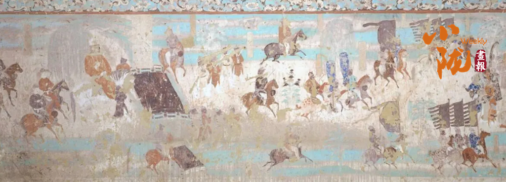 在甘肅璀璨的石窟藝術(shù)中,馬早已超越了具象的生靈,化作融入筆墨丹青的文化靈韻。莫高窟的壁畫里,馬的形象栩栩如生、各具風(fēng)情:西魏249窟的青藍(lán)色翼馬,肩生雙翼、身姿輕盈,與仙人并肩起舞,藏著古人對天空與自由的向往;晚唐12窟的作戰(zhàn)圖中,戰(zhàn)馬披甲馳騁、泅水掙扎,真實還原了古戰(zhàn)場的慘烈與悲壯;盛唐時期的駿馬畫像,體態(tài)雄壯、氣度軒昂,每一筆勾勒都藏著時代的審美與家國情懷。