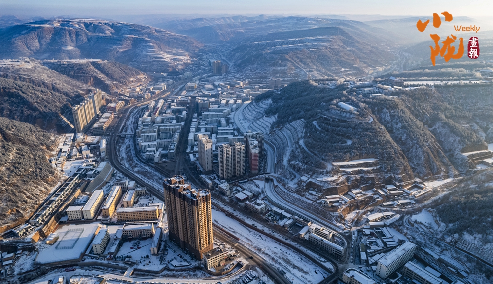 俯瞰雪后華池,溝壑縱橫的黃土高原披上銀裝,陽光斜照雪野之上,投下深淺交錯的光影,靜謐中流轉著溫柔的明暗,純凈而遼遠。