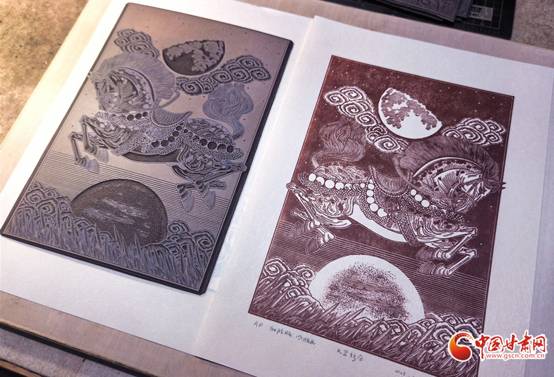 從彩陶紋樣到飛天神韻,從黃河之濱到絲路駝鈴,當(dāng)傳統(tǒng)技藝遇上現(xiàn)代思維,當(dāng)?shù)赜蛭幕鲎踩蛞曇?,趙寧的刀刻人生,既是個(gè)人對(duì)藝術(shù)的執(zhí)著追求,更是一位非遺傳承人對(duì)文化根脈的深情守護(hù)。正如他所說:“版畫不是冰冷的木板,而是有溫度的文化記憶。”在這方寸之間的刻板上,甘肅的故事正被重新書寫,非遺傳承也在時(shí)代語境下實(shí)現(xiàn)著創(chuàng)造性轉(zhuǎn)化,綻放出更加絢爛的光彩。