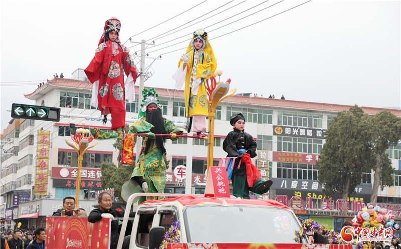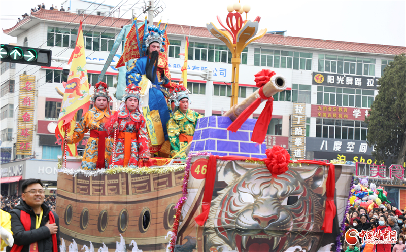 磐安、安遠(yuǎn)、禮辛三鎮(zhèn)聯(lián)合打造的高臺(tái)方陣同樣吸睛奪目,藝人將戲劇人物、神話傳說(shuō)以驚險(xiǎn)奇巧的造型凌空呈現(xiàn),端坐高架的孩童揮手致意,成為街頭極具視覺(jué)沖擊力的流動(dòng)風(fēng)景,彰顯著民間藝人的非凡智慧與膽識(shí)。“高臺(tái)是咱們甘谷的絕活,精巧又驚險(xiǎn),老祖宗傳下來(lái)的好東西,代代都好看!”現(xiàn)場(chǎng)老人的稱(chēng)贊道出了大家對(duì)本土非遺的喜愛(ài)。