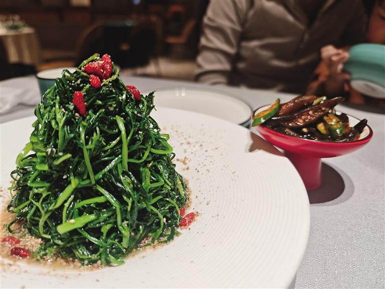 在和家和大酒店,春季限定菜單格外吸睛:頭茬香椿炒雞蛋、丁香魚拌苜蓿芽、豌豆湯煮豌豆苗、油燜鮮春筍、咬春蔬菜團等經(jīng)典與創(chuàng)意春菜一應(yīng)俱全。