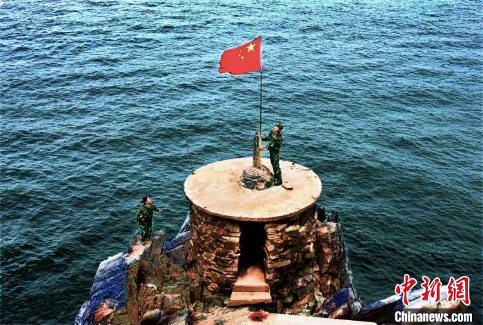 王繼才生前在孤島上升起五星紅旗的資料照片 主辦方供圖