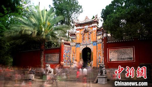圖為暢游重慶奉節(jié)白帝古城?!√詹āz