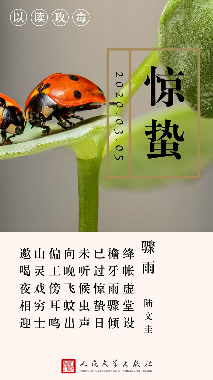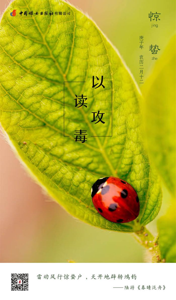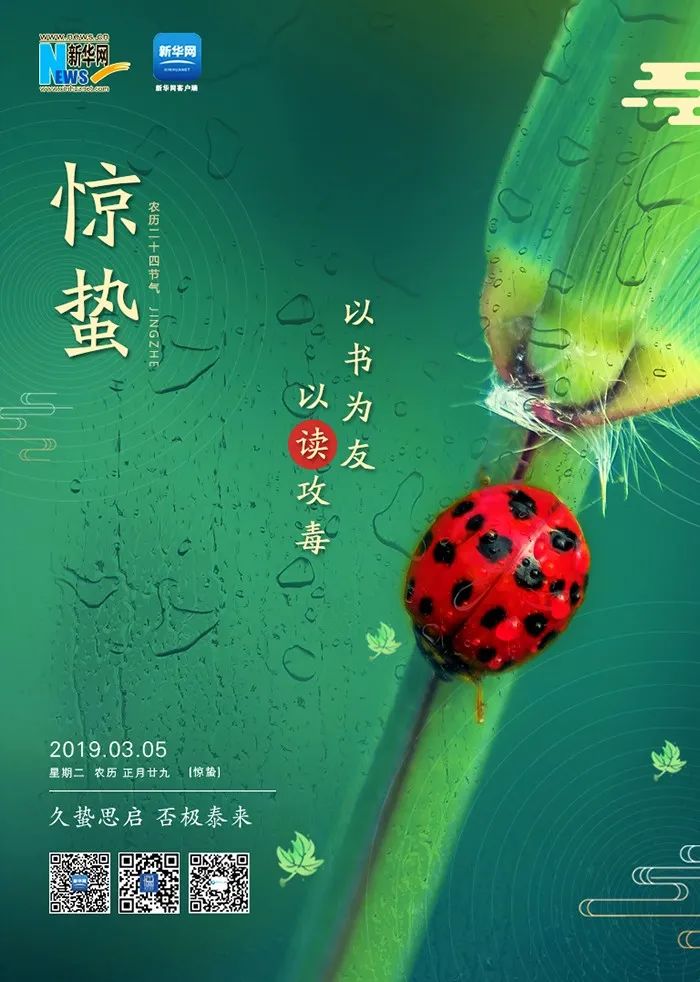 “萬卷古今消永晝,一窗昏曉送流年”,在抗疫重于踏青、防毒甚于訪友的當(dāng)下,一書在手物我兩忘的閱讀就是宅家攻毒的法寶。“我讀,故我在”,自新華網(wǎng)悅讀頻道在其元宵節(jié)海報(bào)上首倡“以讀攻毒”至今,“以讀攻毒”已成文化界熱詞。今日驚蟄,萬物復(fù)蘇,為給居家久蟄的人們鼓勁祈福,展現(xiàn)新華網(wǎng)悅讀推廣人聯(lián)盟與全國人民一道守望相助、共克時(shí)艱,新華網(wǎng)客戶端、新華網(wǎng)悅讀頻道、新華網(wǎng)公益頻道特舉辦“以讀攻毒同題公益海報(bào)聯(lián)展”活動(dòng),以此祈愿國泰民安、山河無恙!祈愿每一位讀者讀有所獲、安康順意!