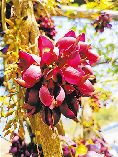 常春油麻藤傷痕累累的莖干上爆出了一堆堆小拳頭,這些小拳頭會(huì)慢慢松開,做一個(gè)飛翔的手勢。是的,它的每一朵花都會(huì)變得像一只紫色的小鳥。但是,這個(gè)過程非常漫長,整整一周時(shí)間,小拳頭不過是長大了一點(diǎn)點(diǎn)。