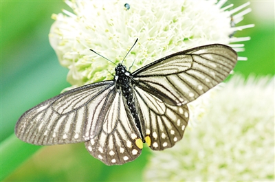 我最先注意到的,是一只半透明的黑色蝴蝶,看上去很像斑蝶,又總覺得有什么地方不對。后來知道了,它就是小黑斑鳳蝶。它擬態(tài)有毒的斑蝶,能讓部分天敵避而遠(yuǎn)之。如果這是一個(gè)設(shè)計(jì)或安排的話,那可真是巧妙。