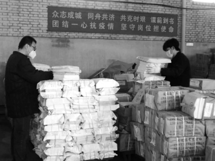 為減少人員聚集,張家口市店教材用書部與部分學校溝通聯(lián)系,根據(jù)不同的年級和班級劃分了領書的時段,采取分年級分時段領書的方式,由每個班級家長委員會的家長到校取書,離校后再把書分給本小組的家長。張北分公司采取了教材教輔裝袋進校、分時段發(fā)放的方式。員工們加班加點連夜為張北縣二中3600名學生配發(fā)圖書,確保第二天送書到校。赤城分公司積極與學校溝通對接,縣城學生的教材全部采取郵寄的方式快遞到家,農(nóng)村偏遠地區(qū)也都送達了行政村。