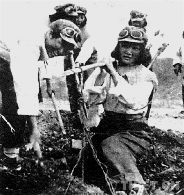 圖為《天路行軍1950——千名女兵徒步進(jìn)藏紀(jì)實》中插圖:搶修機場的女兵