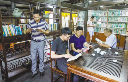 數(shù)字化建設(shè)之外,還有許多農(nóng)家書屋加速迭代升級,農(nóng)家書屋+詩畫社、農(nóng)家書屋+民宿、農(nóng)家書屋+學(xué)校……農(nóng)村基礎(chǔ)閱讀設(shè)施不斷延伸著閱讀與致富的新功能?,F(xiàn)在,當(dāng)人們行走在浙江省慈溪市的田間地頭,有著年代感的文物古建筑、環(huán)境優(yōu)雅的茶館民宿、人氣頗高的田園農(nóng)莊等各具特色的閱讀空間吸人眼球。近年來,浙江省慈溪市委探索推進“鄉(xiāng)村書房”建設(shè),選擇將閱讀服務(wù)嵌入到鄉(xiāng)村的準(zhǔn)公共娛樂空間,一個個錯落在慈溪田野鄉(xiāng)間的“鄉(xiāng)村書房”,創(chuàng)新拓展了農(nóng)村閱讀的服務(wù)空間,助推了文化傳播和共享。