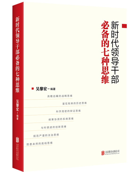 日前,北京聯(lián)合出版公司出版了《新時代領(lǐng)導干部必備的七種思維》一書。本書圍繞如何提高理論思維能力,對戰(zhàn)略思維、歷史思維、辯證思維、系統(tǒng)思維、創(chuàng)新思維、法治思維、底線思維的含義、功用和訓練方法進行了系統(tǒng)闡述。
