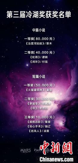 圖為第三屆冷湖獎(jiǎng)獲獎(jiǎng)名單?!O睿 攝